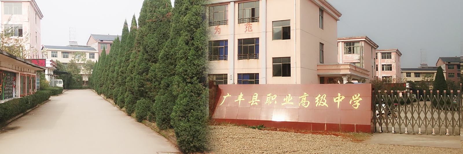 廣豐職業(yè)高級中學(xué)坐落于具有“八方通衢”和“豫章第一門戶”之稱,東聯(lián)浙江、南挺福建、北接安徽,處于長三角經(jīng)濟(jì)區(qū)、海西經(jīng)濟(jì)區(qū)、鄱陽湖生態(tài)經(jīng)濟(jì)區(qū)三地交匯處——上饒市廣豐區(qū),是一所經(jīng)市、區(qū)教育主管部門批準(zhǔn)、省教育廳備案的普通中等職業(yè)學(xué)校。自1998年創(chuàng)辦以來,為社會培養(yǎng)數(shù)以萬計高素質(zhì)、高技能的合格人才。先后被評為“江西省示范中等職業(yè)學(xué)?!?、“上饒市優(yōu)秀民辦學(xué)?!?、“廣豐區(qū)教育教學(xué)先進(jìn)單位”,2016年通過省教育廳專家組評估,成為廣豐區(qū)第一所達(dá)標(biāo)中專學(xué)校。