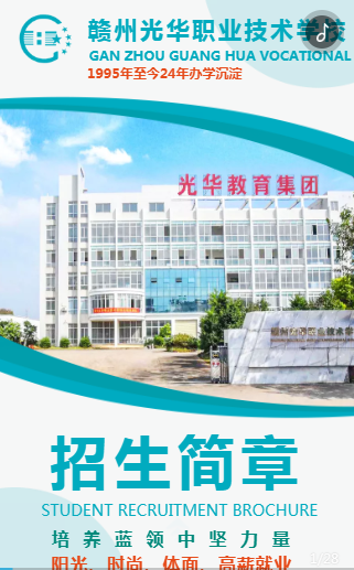 贛州光華職業(yè)技術(shù)學(xué)校本站網(wǎng)址:http://m.hczzz.cn/plain/753贛州光華職業(yè)技術(shù)學(xué)校網(wǎng)址:http://www.gh-school.com贛州光華職業(yè)技術(shù)學(xué)校是經(jīng)江西省教育廳備案贛州市教育局以及贛州市人力資源和社會(huì)保障局批準(zhǔn)的全日制與準(zhǔn)軍事化管理的一所綜合性學(xué)校。學(xué)校創(chuàng)辦于1995年5月具有20年的辦學(xué)積淀,學(xué)風(fēng)濃厚,校風(fēng)純正。學(xué)校先后在贛州經(jīng)開(kāi)區(qū)兩地設(shè)立了兩個(gè)校區(qū)辦學(xué)。兩...
